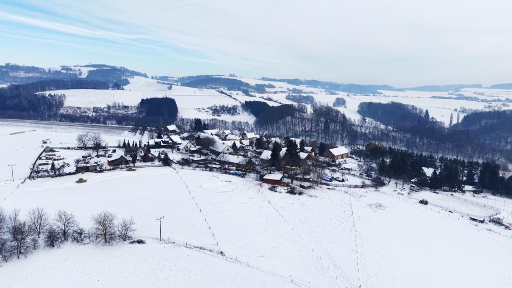 Dům stojí v klidné části obklopené loukami a přírodou, ideální pro ty, kteří hledají poklidné bydlení mimo ruch měst, přitom s dobrou dostupností autem: